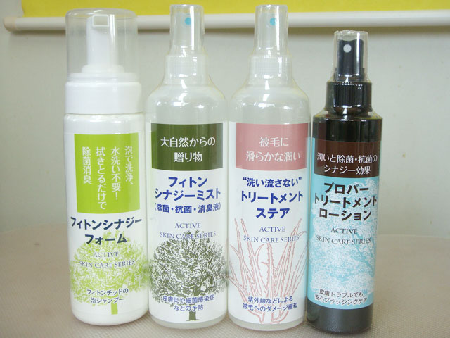 ご自宅でのお手入れに役立つドライシャンプー、消臭・除菌スプレー、洗い流さないトリートメントスプレーなどもございます。